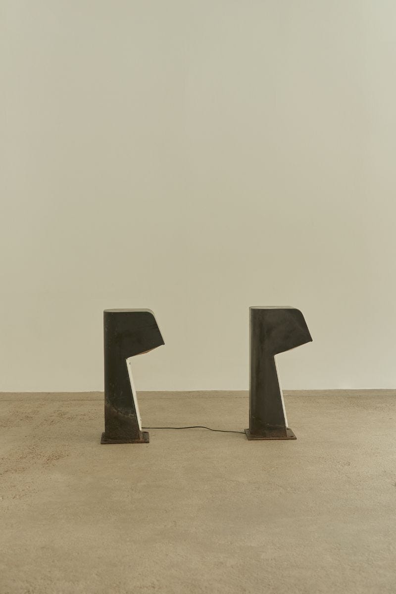 The inspiration image is an iconic lamp designed by architect Le Corbusier. The lamps were custom cast in concrete for Unite d’Habitation in Marseilles. Unite is a radical housing typology, but what makes this lamp so special is that the architect designed it using the same principles as the building itself. If minimalism and brutalism appeal to you, this lamp is an iconic piece of these movements. Seeing and understanding Corbusier’s lamp made me want to study architecture. These two lamps have a similar monolithic brutalist presence. I think they would look so monumental paired on either side of a really simple relaxed linen sofa or a bed with a wrinkled linen duvet.