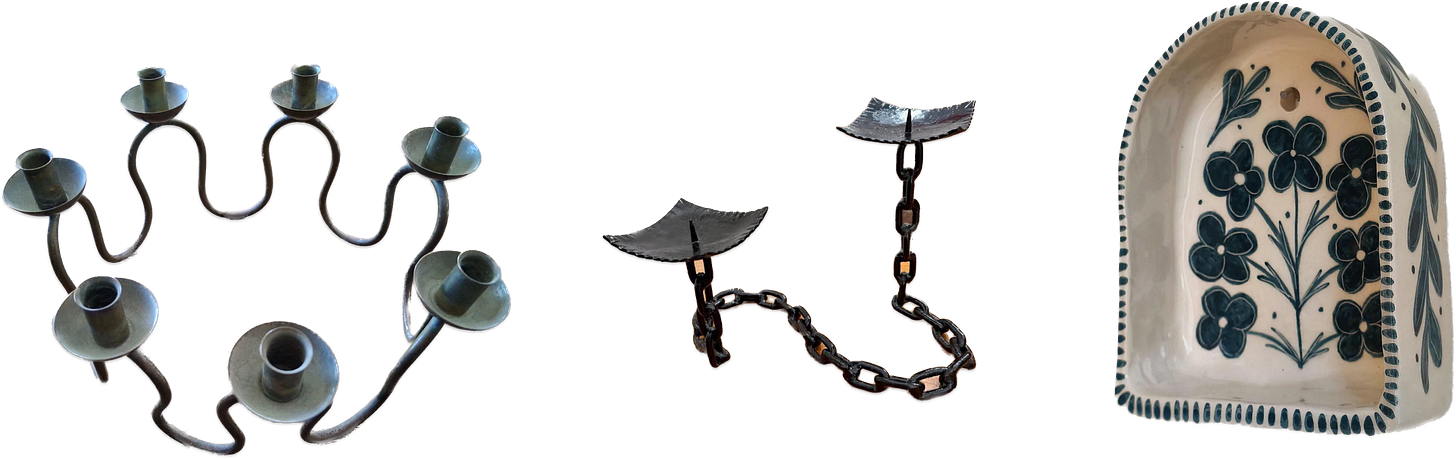 I’d rather invest in a candle vessel that will outlive me than a $68 candle that disappears in ten hours and sits in half the living rooms on the internet. Florida-friendly Brutalist piece here, cool artist-made altar here, and groovy 50’s centerpiece here.
